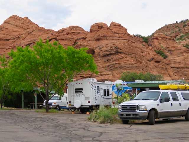 Had we not been concerned about the possibility of 95-degree days, we would have opted for a non-hookup site. Scattered throughout little side canyons, these spacious campsites are much more private. The campground offers nice restrooms with free hot showers, a dump station, and fair Verizon coverage; campsites with hookups are $20, those without are $16. The town of St. George is just a few miles away, with every amenity you could possibly desire.